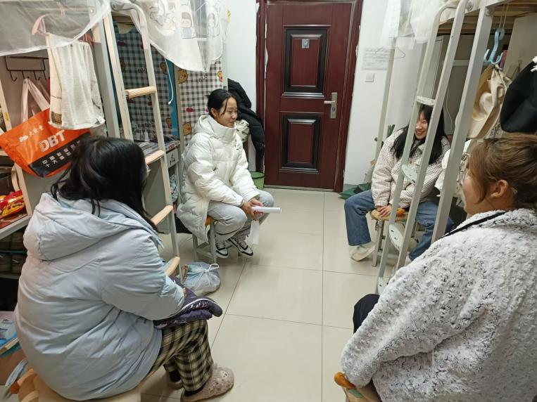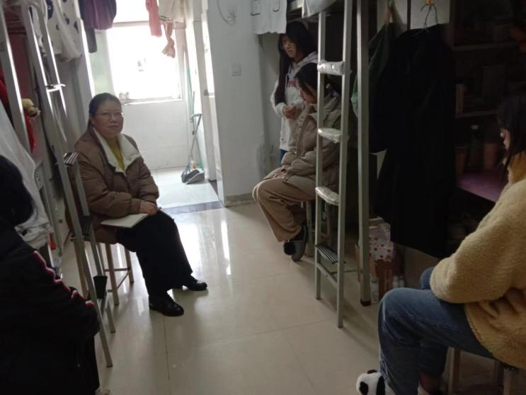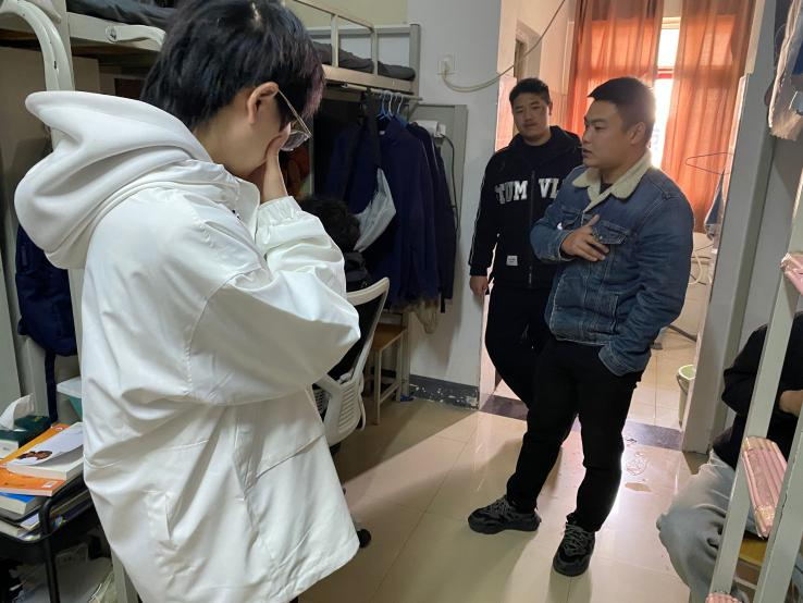 为了深入了解员工,走近员工生活,排查宿舍安全卫生隐患,2023年2月15日中午,在政法公司党总支书记张晓同志的带领下,全体党员老师以及部分员工党员代表走进22级新生宿舍,开展了“党员进寝室”的访谈活动。