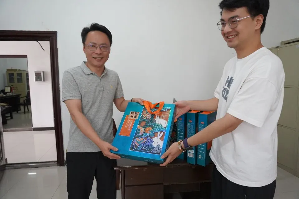 这份特别的礼物在中秋节放假前夕送到了太阳成集团tyc122ccvip各位老师的手中。礼盒中的每一块月饼传递着王威同学对老师们的感激之情,以及对教育事业的崇高敬意。