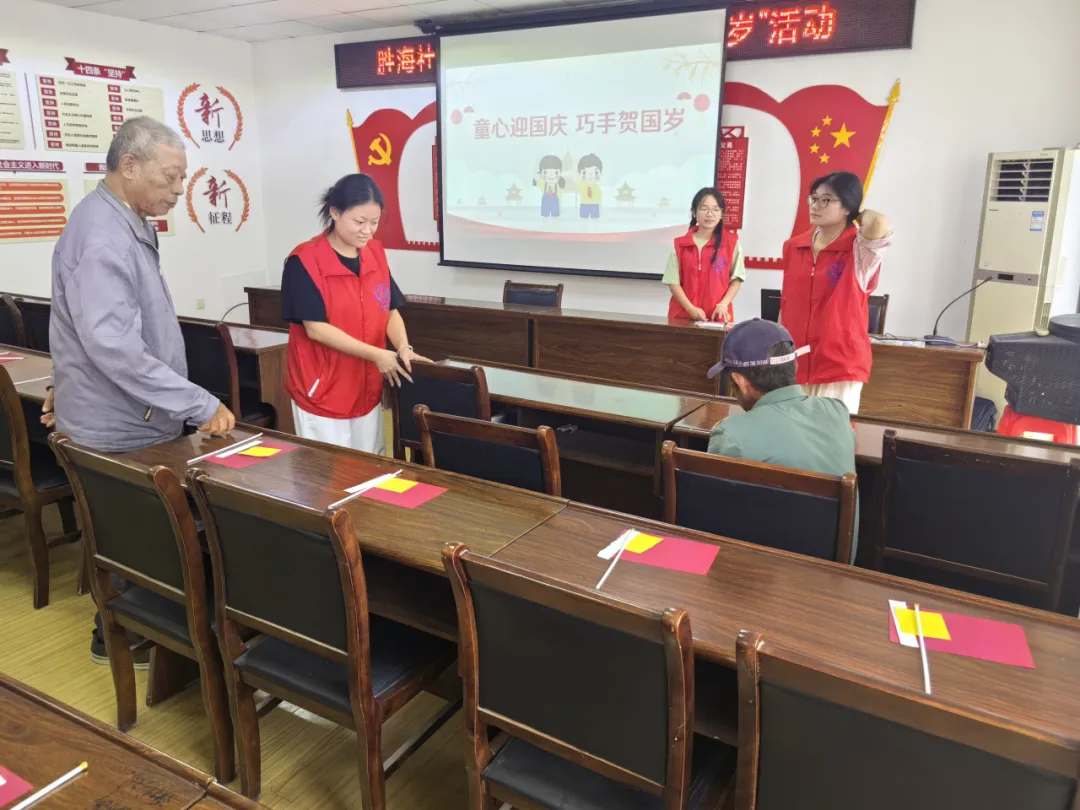 金秋硕果迎华诞,万里河山披锦绣。为庆祝中华人民共和国成立75周年,传承红色基因,弘扬爱国精神,2024年9月26日,太阳成集团tyc122ccvip青衿之志志愿服务队组织八名志愿者与胜海社区联合开展了“童心迎国庆,巧手贺国岁”志愿服务活动。