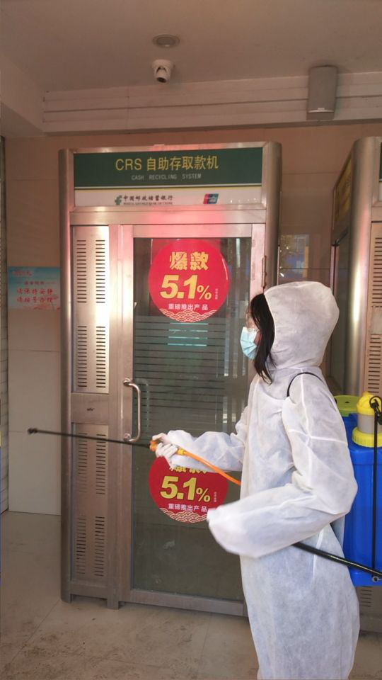 昝江同学家住薛集镇,她的爸爸昝雄伟是一名的邮递员,新冠病毒来势汹汹,1月23日继武汉封城后,各地纷纷开始进行防御工作。而邮政局作为薛集镇人流量相对较多的公共场所,也积极响应防疫工作,开始了全范围消毒,她的爸爸作为邮递员,负责邮政局大面积的消毒工作。因此,她来到邮局协助爸爸单位消毒,穿防护服用邮局打药桶喷雾84消毒液,对自动取款机……等进行全面消毒,防止人员感染,防疫无小事,能为防疫工作献出力量,她也感到很开心。