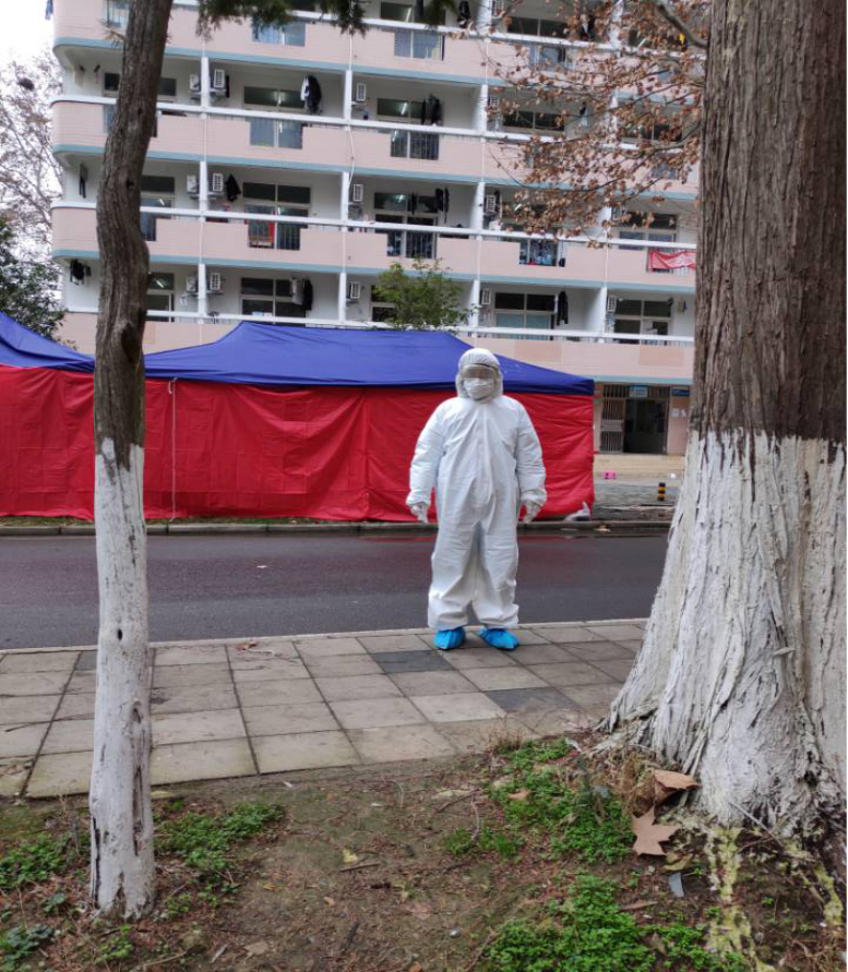 当疫情来袭时,胡莹同学和盛晓静同学第一时间加入到洲头社区的志愿者行动中。她们于2月5日上午早上八点半到达武汉洲头社区开始工作,直至下午五点她们一直都在帮忙宣传防疫措施,帮忙分发防疫手册,劝说在外未戴口罩的居民戴口罩,以及帮忙搬运防疫物资。2月11日,她们一起去到武汉船舶职业技术公司的隔离点进行她们