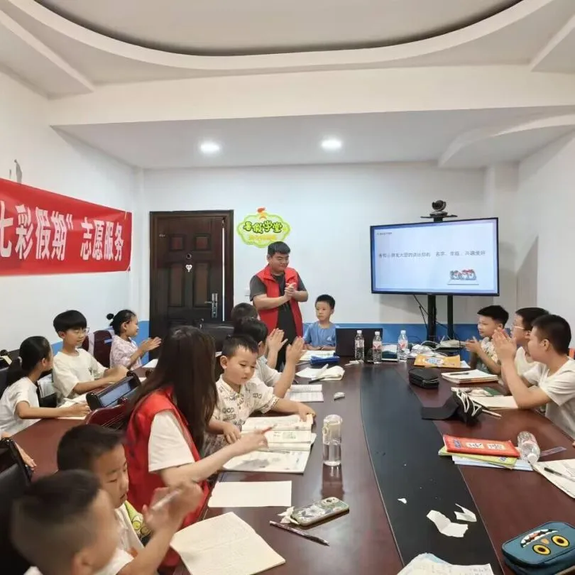 初次相识,小朋友们在志愿者小老师的带领下一一上台自我介绍,从姓名年龄,到唱歌跳舞的才艺展示,小朋友们踊跃展示着自己独特的风采,希望在新朋友和新老师面前留下深刻的一面。青春的生活永远充满惊喜与狂欢,为打破沉默,让温暖与欢乐在教室传递,一场欢快的破冰之旅顺利展开,随后志愿者小老师们带领同学们进行了“看字读色”、“数字传真”等破冰小游戏,让来到陌生环境的小朋友们互相熟悉、相互了解,为接下来的学习营造和谐有爱的环境。在大家的自我介绍和破冰小游戏中,小朋友们从最初的害羞腼腆到一起嬉笑玩闹,这一刻大家其乐融融,尽现暑期学堂风采。
