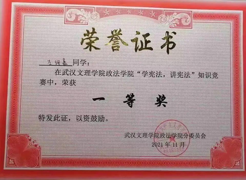 奋力奔跑,勇于追梦,是青年该有的姿态;向上向善,求真求实,是青年应有的精神。2021年度,2019级法学2班在党组织的感召下,奋发有为,发挥了先锋模范作用,经过一年的努力,最终荣获“武汉市五四红旗团支部”称号。在拥党爱国风气的渲染下,2019级法学2班班委干部积极组织开展爱国主义教育班会、各项党史教育活动、各类团日活动、志愿者服务以及团支部实践活动。从2019级法学2班团支部成立至今,每期青年大学习一直保持着100%的学习率,浓烈的拥党爱国风气渲染了整个班级,2019级法学2班满怀一腔热血,用行动谱写青春最美的华章。
