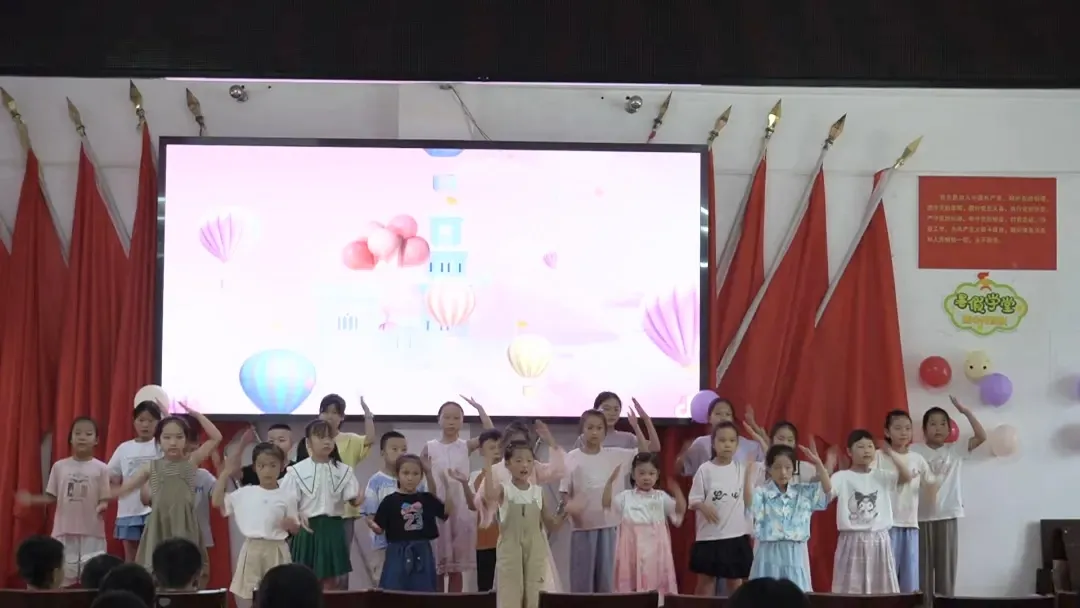 参与暑假学堂的每一个小朋友都踊跃上台,共同参与集体舞蹈,用自己稚嫩的舞姿记录下这十五天的“好时光”。