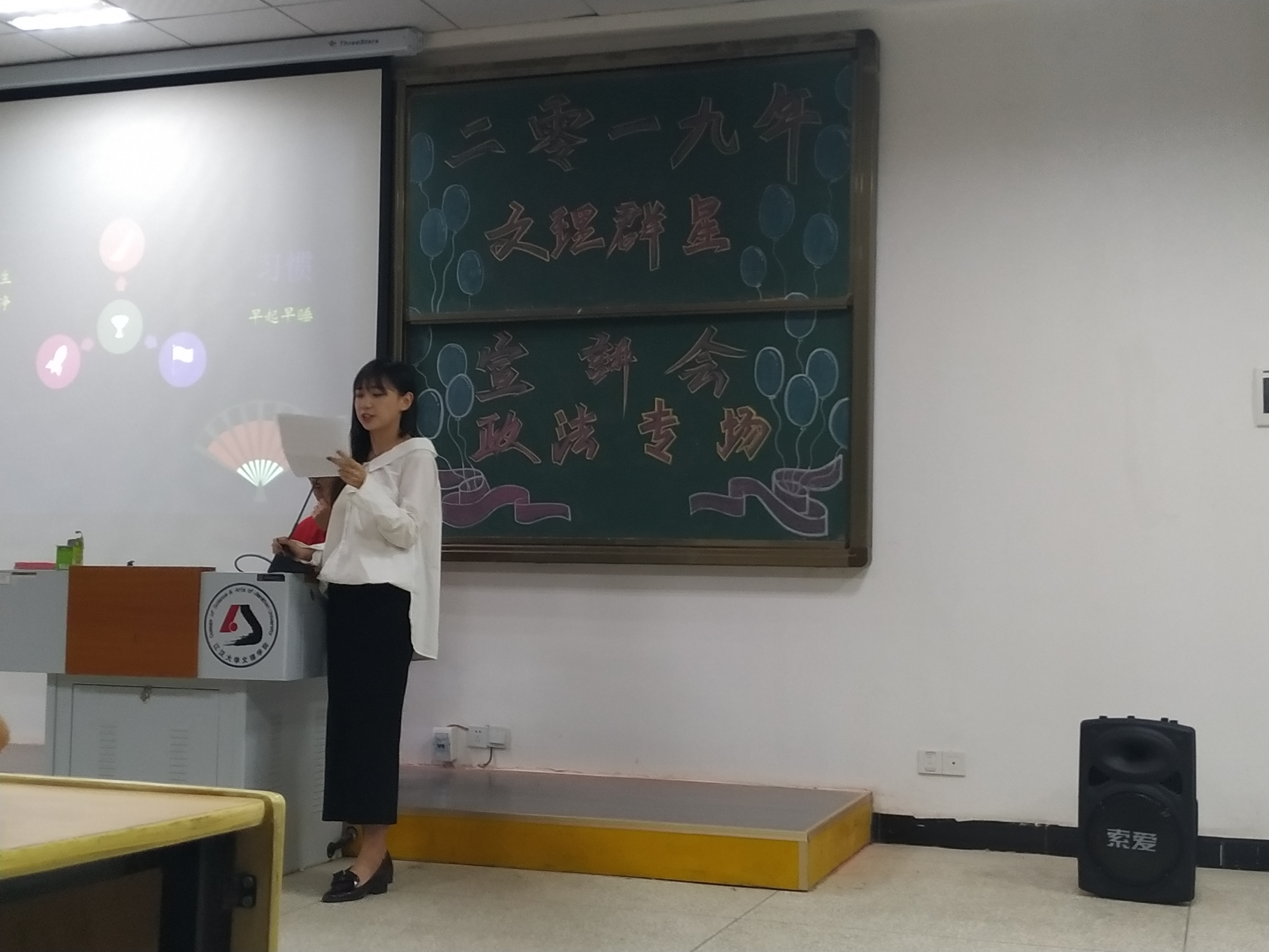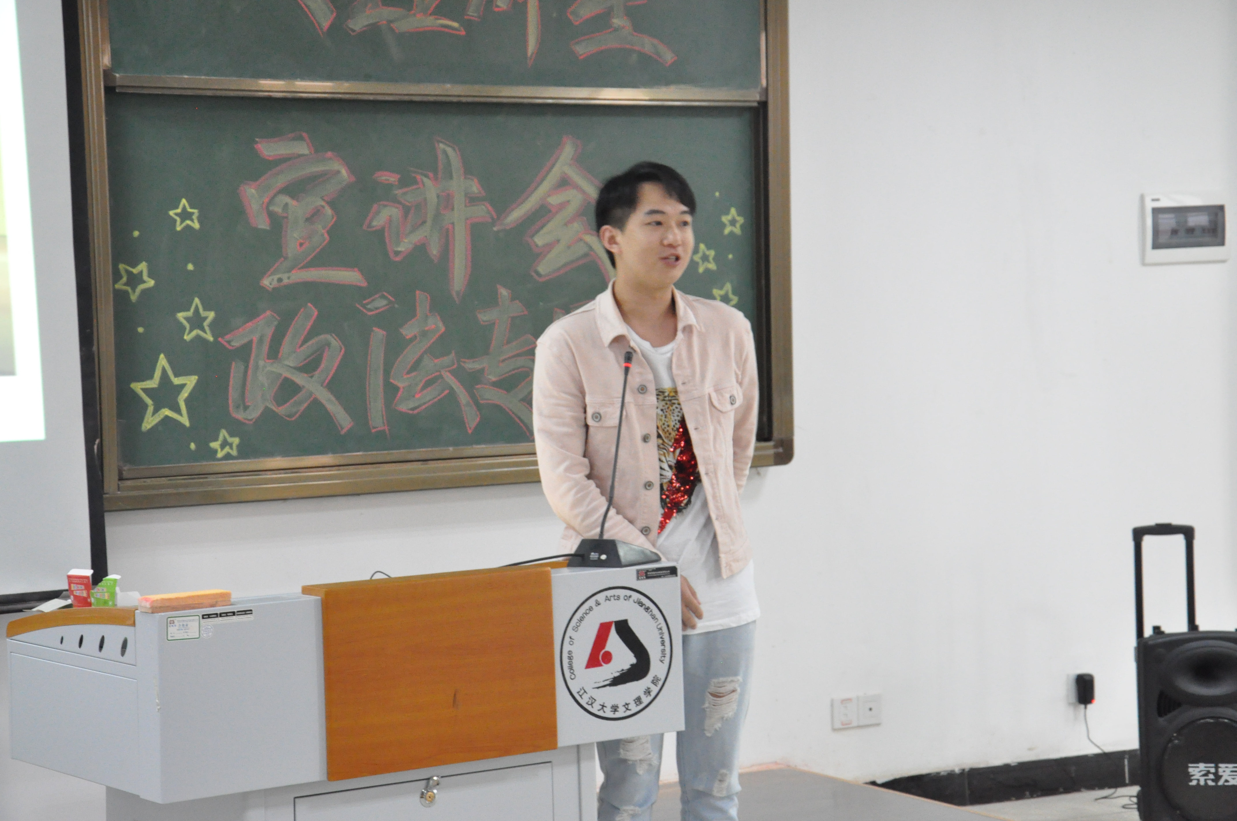 第二个演讲的是“董事长奖学金”获得者陶婉婷,不忘初心,方得始终,其围绕着陶行知先生教育观中的“知”,“行”两方面展开了演讲。从参加校礼仪队等社团到竞选班长带班进行沌口经济开发区人民法院开庭学习。宣讲人的经历告诉了我们什么叫勇往直前。之后宣讲人讲述了自己在大学中的学习及工作的种种都让我十分佩服,幻想着自己有一天也能像学长学姐们一样优秀。