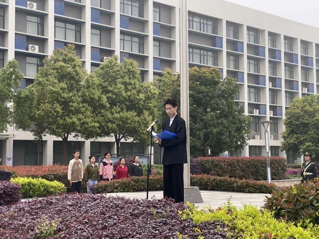 2021级法学5班的金钟作为公司员工代表在国旗下发言,他说道:“安而不忘危,存而不忘亡,治而不忘乱”。国家安全关乎社会大众,关乎国家的未来和民族的希望。他呼吁大家应以“冀以尘雾之微,补益山河”;应以“萤烛末光,增辉日月”。从身边点滴小事做起,我们要在实践中结合个人的专业知识,树立国家安全意识,积极维护国家稳定。为建设一个更加安全、更加繁荣、更加美好的祖国而努力奋斗!