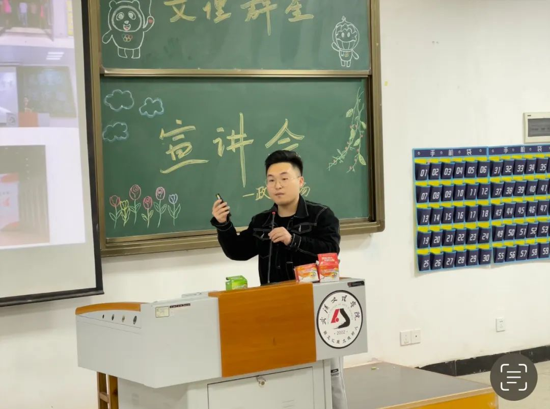宣讲内容:龚文龙学长希望我们抓好每一门课程,广泛阅读,积极思考,不要有抵触情绪,培养自己的兴趣非常重要,同时也鼓励同学们多参加实践活动以及志愿者,会有意想不到的收获。