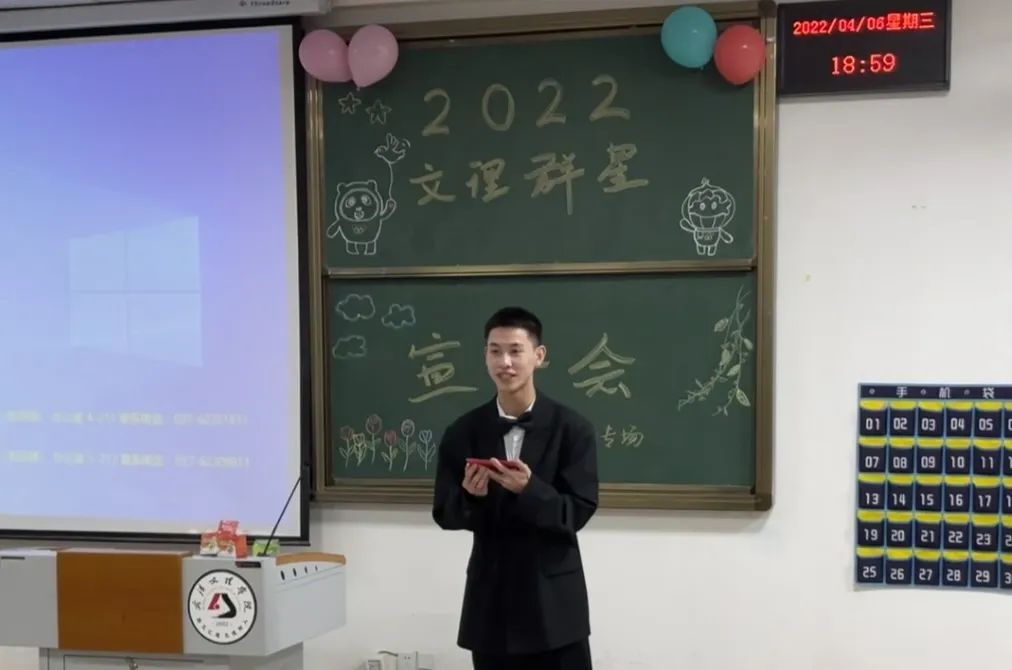 宣讲内容:在学习上,程先锋学长建议我们多读、多背、多理解,理解为金,记忆为银;在竞赛上,从自己参加过的比赛“挑战杯”、“互联网+”给出经验,需要实践、做出作品、脚踏实地;从参加的员工工作中,鼓励大家丰富自己的老员工活并多去参加社团活动。
