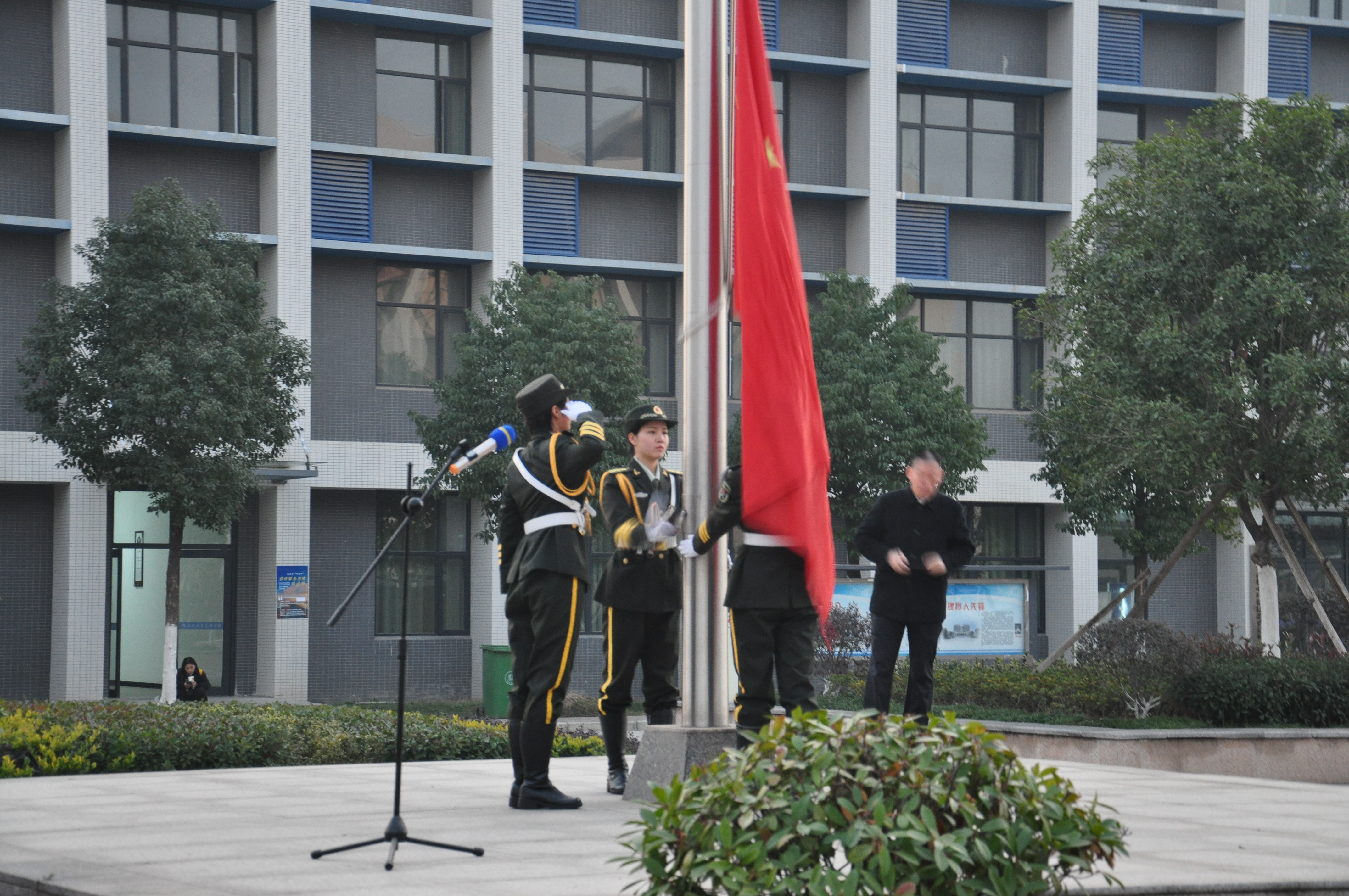 仪式在嘹亮的声音中画上了句号,升起的是国旗,点燃的却是同学们满腔的爱国情怀,飘扬的五星红旗不畏惧凌冽的寒风、不畏惧倾盆大雨,也预示着我们文理政法学子要不惧艰险,凝心聚力,奋勇前行。珍惜大学时光,不负韶华。