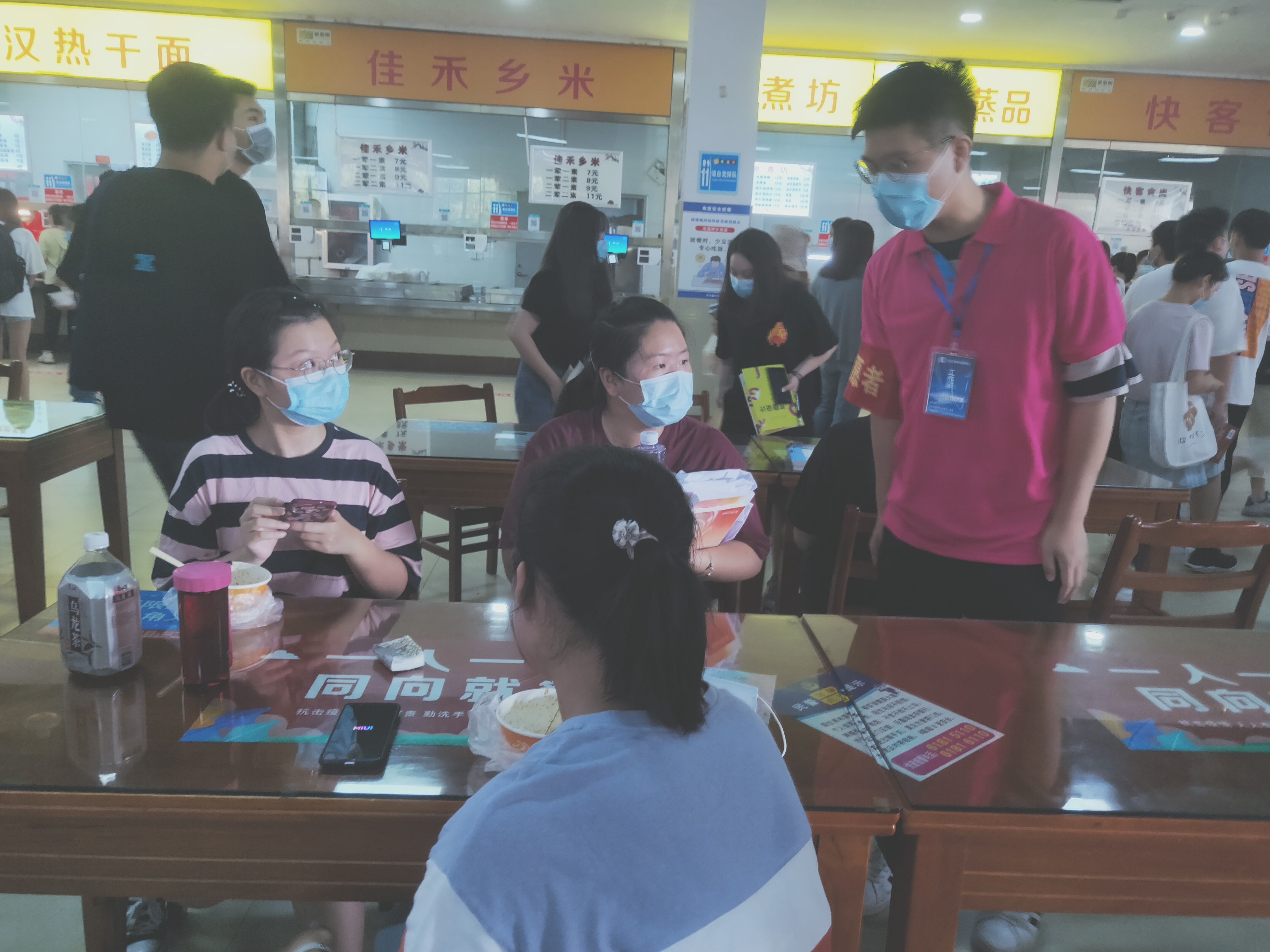 民以食为天,食以安为先。健康要从饮食做起。为做好新学期公司疫情防控工作,确保广大师生员工的身体健康。在太阳成集团tyc122ccvip领导以及辅导员老师的指导下,从8月31日开始,政法分团委员工会的员工干部们身着政法小粉,佩戴好志愿者袖章,在新老食堂里开始了公司文明食堂就餐的志愿者引导工作。