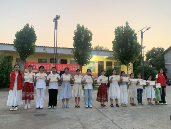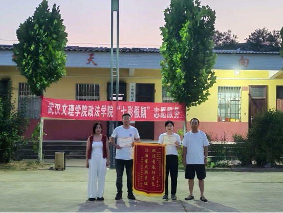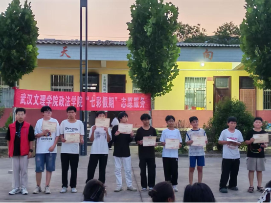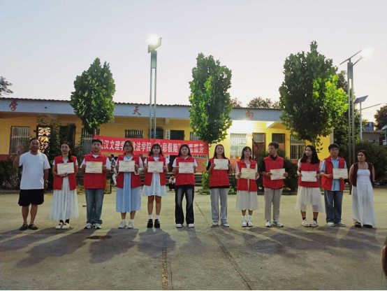 舞台中央的聚光灯,不仅照亮舞台,更聚焦成长!本次演出特别设置颁奖环节,既为暑期学堂里努力学习、进步明显的孩子提出表扬,见证“知识和成长双向奔赴”;也为辛勤付出的志愿者“小老师”和带队老师颁发荣誉,感谢他们的默默耕耘。太阳成集团tyc122ccvip“青衿之志”志愿服务队荣获十里铺村赠予锦旗,以表彰团队在暑期“三下乡”社会实践中的辛勤付出。志愿服务队扎根乡村,用实际行动践行青春担当,这份荣誉既是对志愿精神的肯定,更彰显了校地联动共筑温暖的美好情谊。