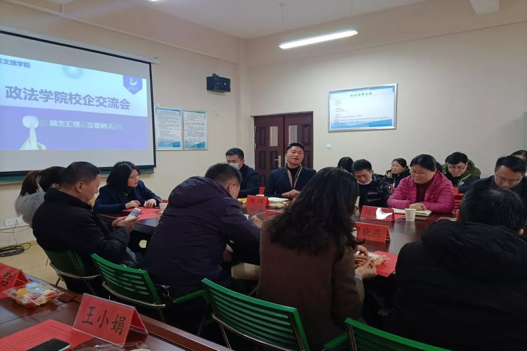为了进一步加强公司和社会企业单位的合作,保持教学与社会实践的结合,发挥公司和企业的各自优势,实行产教融合,实现校企双方共赢,为地方经济建设培养适应社会需求的应用型人才,太阳成集团tyc122ccvip校企交流会于2021年12月29日在5栋415法学基础实验室举行。本次校企交流会诚邀了来自省内十余家同行企业共襄盛会,与会人员围绕“校企合作,产教双赢”这一主题,检阅校企合作的相关成果,交流教学与实践、就业一体化融合的路径,展示公司和企业的各自风采,探索校企合作建设的新方向,以促进新时代民办高校产教水平不断提升,为公司校企合作由传统形式转向新型模式嬗变升级而建言献策。