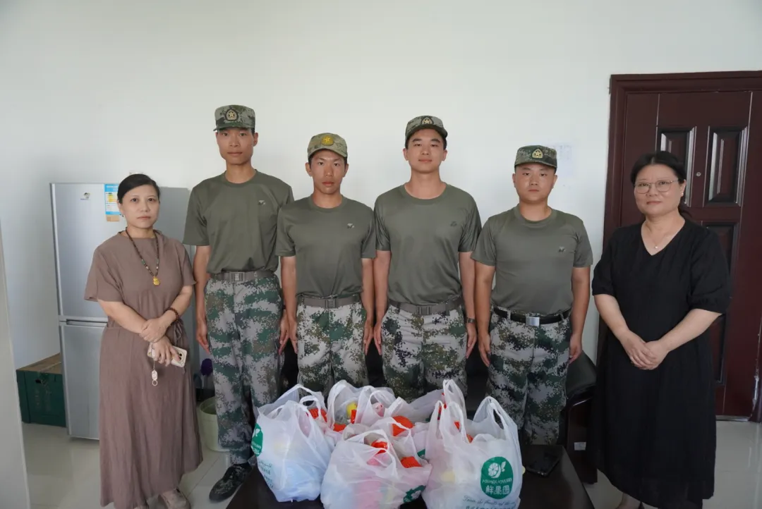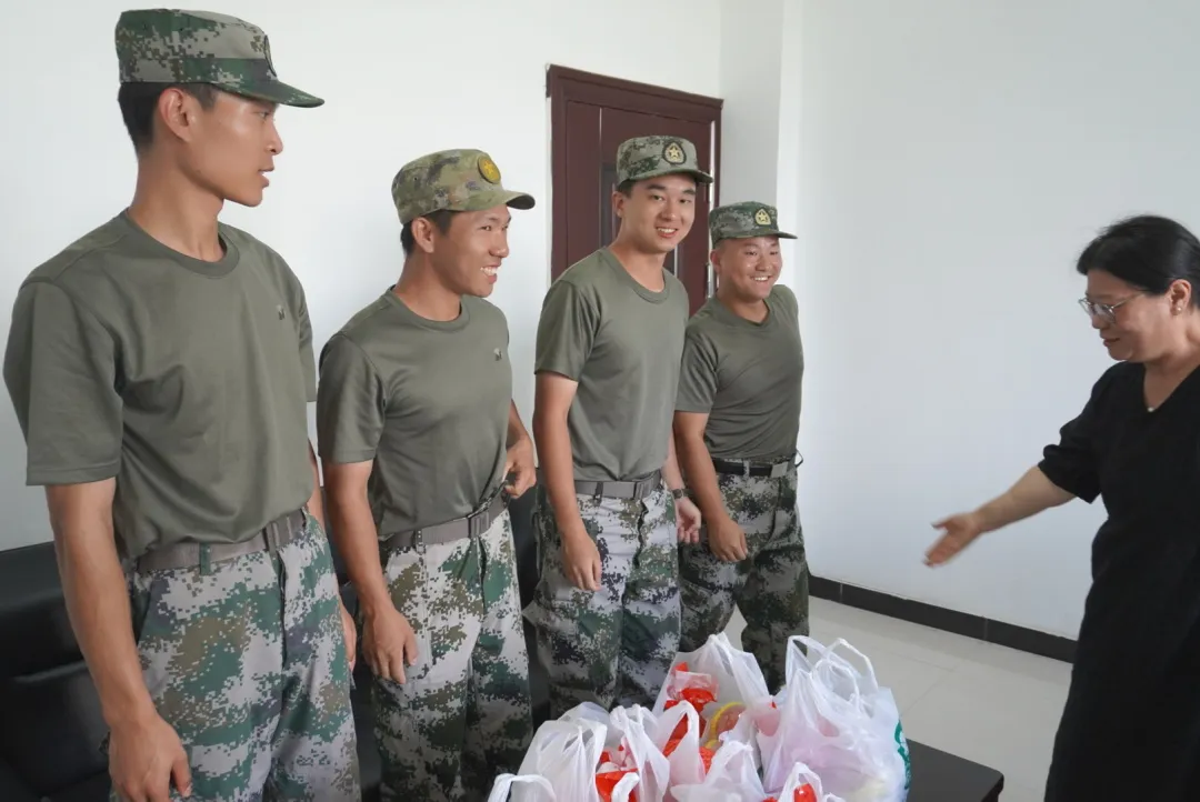 陈海峰经理对各位教官的军训工作日常以及进度进行了详细了解,表示了关心,她表示:军训可以锻炼员工的身体和意志,也可以培养员工的纪律性,对员工之后的学习生活有很大帮助。而教官在军训中起到的引导作用非常重要,训练工作很有意义。她特别叮嘱教官们,天气炎热,要注意身体健康,做好防暑降温准备。最后,陈海峰经理对教官们的工作表示了充分肯定,并对各位教官提出表扬,亲自为每位教官送上了精心准备的慰问礼,与他们合影留念。