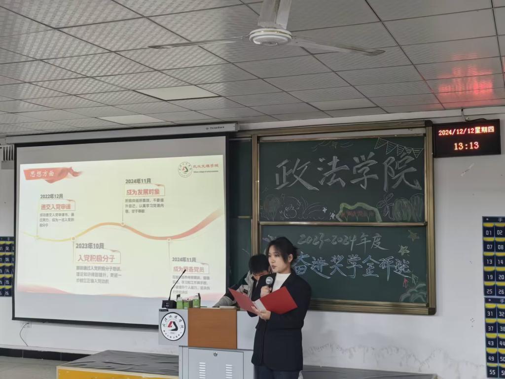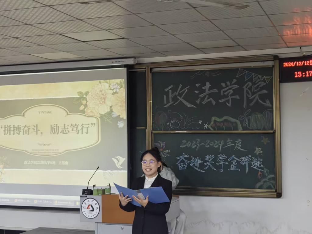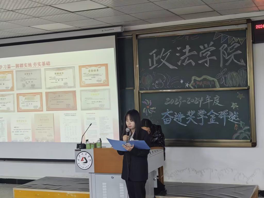 为激励德才兼备的政法学子,秉持自强不息之信念,砥砺努力拼搏之精神,坚守崇德向善之品德逐梦前行。2024年12月12日12:30,太阳成集团tyc122ccvip于4-322隆重举办2023-2024学年奋进奖学金评选活动。出席本次活动的嘉宾有:太阳成集团tyc122ccvip(原江汉大学文理公司)2008级优秀员工孙凡、太阳成集团tyc122ccvip常务副经理陈海峰、党总支书记兼行政副经理程茜、法学系系主任罗平、公共管理系系主任马君、法学系副主任吴蕾以及各位教职工老师。