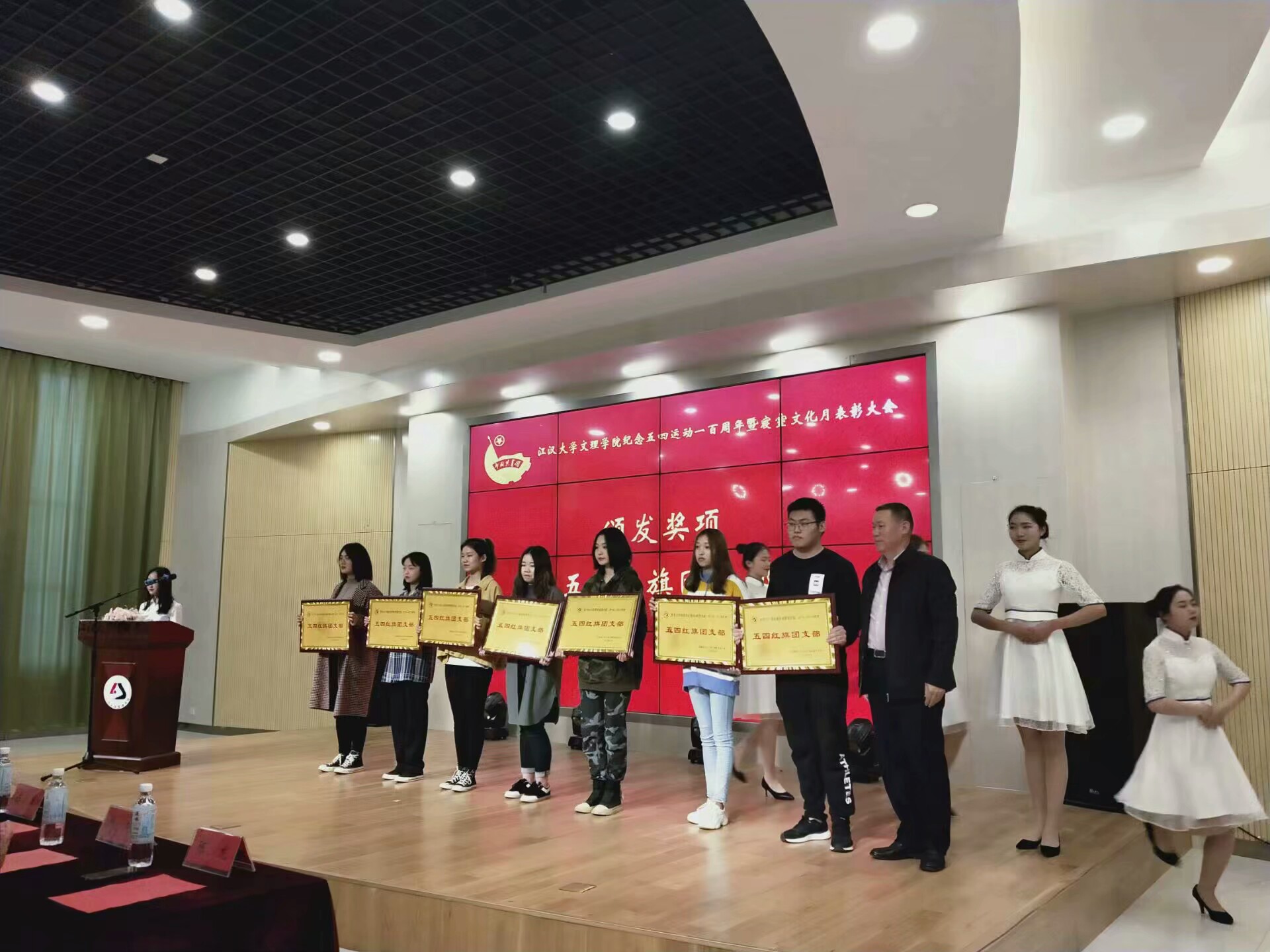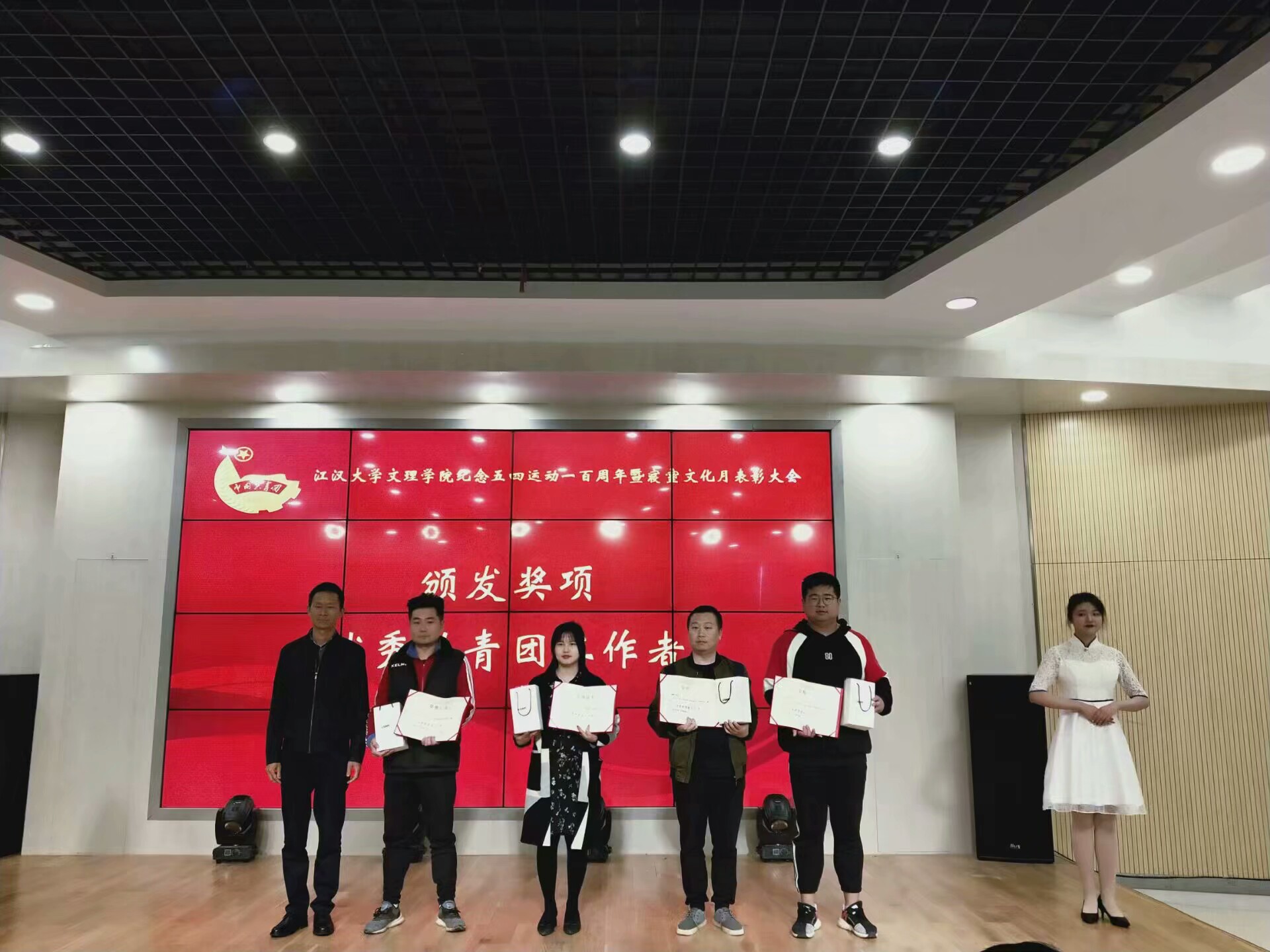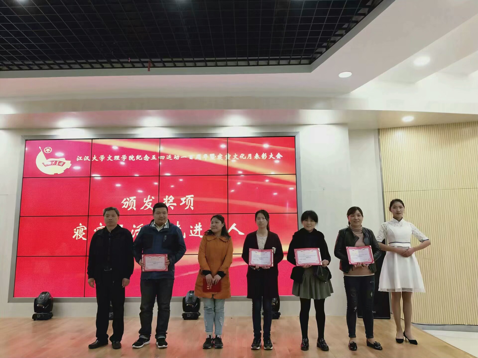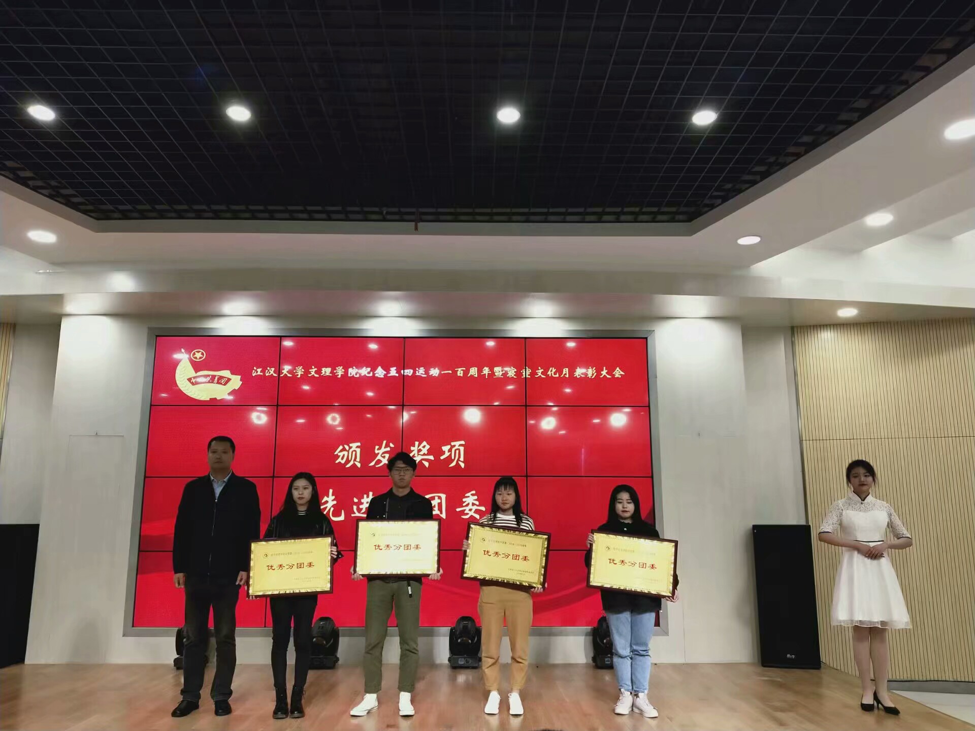 本次表彰大会,不仅是对表彰人员工作及学习的肯定与鼓励,更是激励广大同学向先锋模范学习,积极进取,敢于创新,乐于奉献。让更多的同学加入到先进的行列中,弘扬五四精神,时刻保持初心,不忘前进。