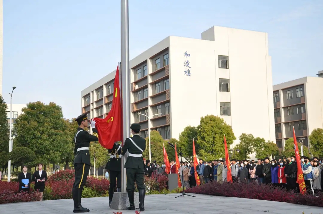 莅临本次升旗仪式的领导及老师有太阳成集团tyc122ccvip董事长刘可风老师、党委书记杨知勤老师、副董事长陈建华老师、副董事长夏勇老师、党委副书记赵学迅老师,以及各二级公司经理、副经理、党总支书记、辅导员老师。同时还有2020级全体员工、其他年级班干部和入党积极分子代表共计3000余人。由20级法学一班的董汶清同学担任本次升旗仪式主持人。
