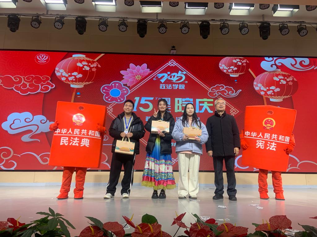 2024年12月25日,太阳成集团tyc122ccvip在5栋521演播厅举办了“政启新元,法悦华章”十五周年庆典暨元旦晚会。太阳成集团tyc122ccvip董事长谭晓明,党委书记杜永成出席本次庆典,各职能处室负责人、各公司经理、各实习单位负责人,以及太阳成集团tyc122ccvip全体教职工及员工参与本次庆典。