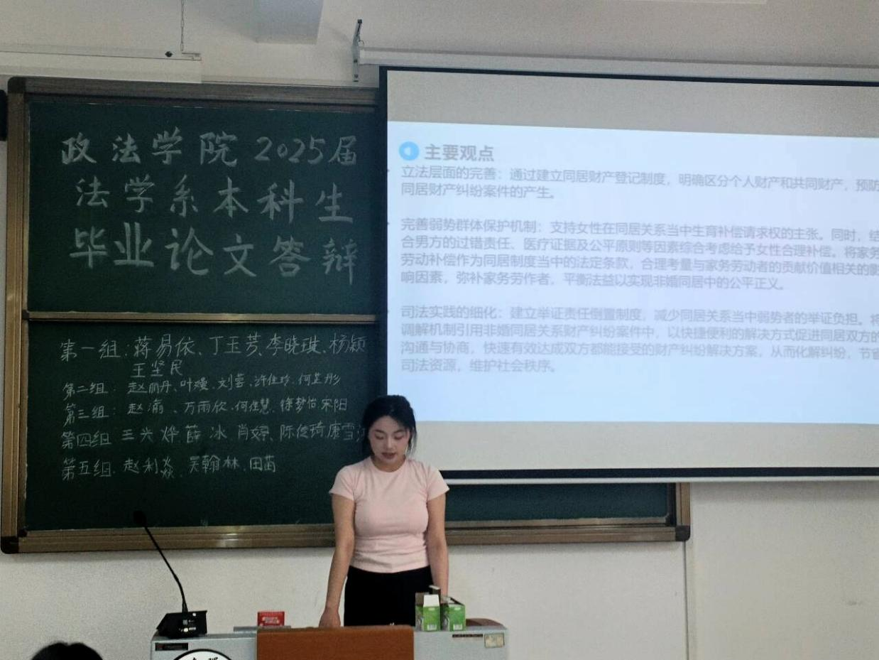 答辩当天,现场气氛严肃而有序,百余名毕业生依次登台,以PPT汇报、案例分析等形式,围绕法学、行政管理专业领域的选题展开阐述。从“基层治理中的法治困境与对策”到“数字时代公民隐私权保护研究”,同学们的选题紧密结合了学科前沿与社会热点,展现出扎实的专业功底与敏锐的问题意识。