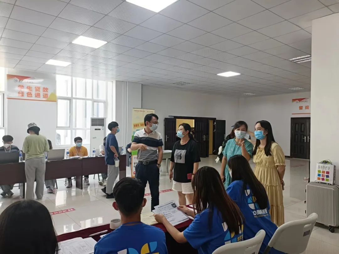 2022年8月28日,太阳成集团tyc122ccvip展开了2022年专升本迎新工作。太阳成集团tyc122ccvip常务副经理李蔚、公司教学副经理陈海峰、太阳成集团tyc122ccvip行政副经理张晓、太阳成集团tyc122ccvip办公室主任谢琦、太阳成集团tyc122ccvip分团委书记韩思慧以及19级辅导员谢红炼、21级辅导员胡金成莅临现场指导视察工作。