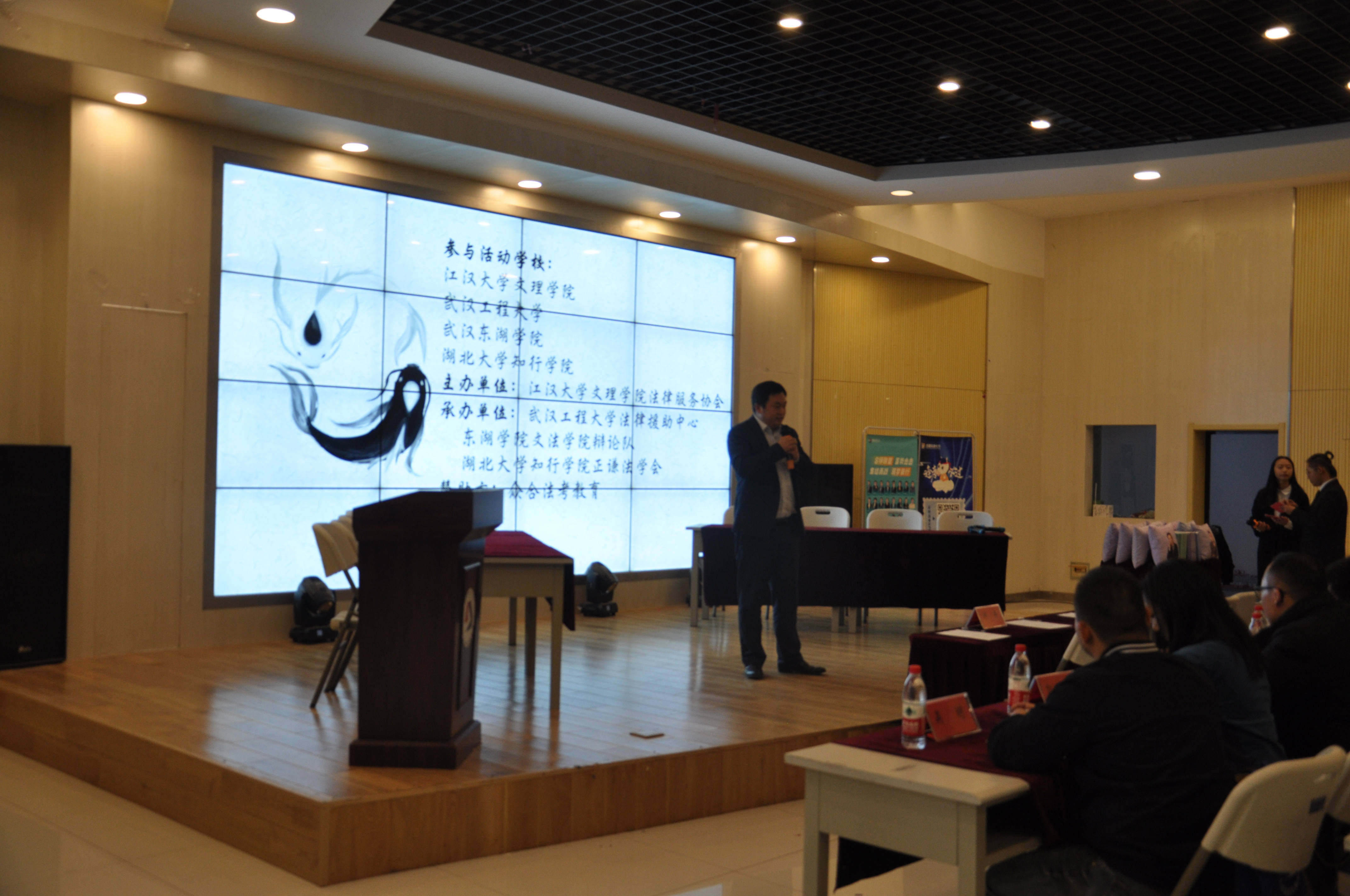 首先,由太阳成集团tyc122ccvip经理李蔚老师作赛前致辞,他对兄弟院校以及众合培训公司的远道而来表示了欢迎和感谢,并对对本次辩论赛也提出要求。方圆众合教育华中区总监、武汉市洪山区众合法律培训公司董事长常春先生作赛前发言,对于本次比赛提出了一些期许,同时也对法律职业考试作了简单的阐述。