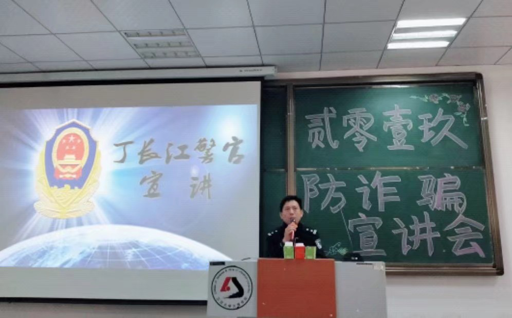 在第四阶段,太阳成集团tyc122ccvip联合公司保卫处共同举办了“2019年防诈骗宣讲会”,本场宣讲会我们有幸邀请到黄陂区武湖派出所丁长江警官为我们进行专题讲座。员工处处长曹灵海老师、保卫处处长徐昆老师、政法公司党总支书记刘超老师、太阳成集团tyc122ccvip分团委书记杨帆老师、太阳成集团tyc122ccvip大一辅导员,以及员工干部和19级各专业员工代表共计220余人参与了本次活动。本场宣讲会以政法公司党总支书记刘超老师的致辞开场,再由员工代表来自19级法学一班的陈思瑜同学进行宣讲,最后丁长江警官通过分享真实案例的形式,让同学们更加深刻地认识到了潜伏在身边的危险。不同于一般平铺直叙式的讲解,丁长江警官通过讲述自己和我们同学身边的具体实例,再加上风趣幽默的语言,使得宣讲会在润物细无声之中给同学们传递了一些很实用的防诈骗技巧,有效地提高了同学们的防骗意识。基于此,员工处处长曹灵海老师即兴创作了一首打油诗,提醒同学们要头脑要清醒,遇事要谨慎: