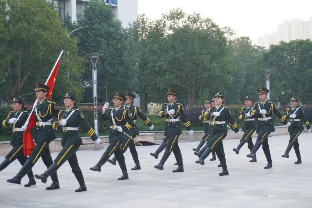 彤彤旭日,熠熠朝霞,国旗护卫队护送着国旗,迈着坚定的步伐,昂首走向升旗台;国歌奏响,政法学子庄严地行注目礼,鲜艳的红旗迎着朝阳冉冉升起,激励我们砥砺前行,奋发向上。