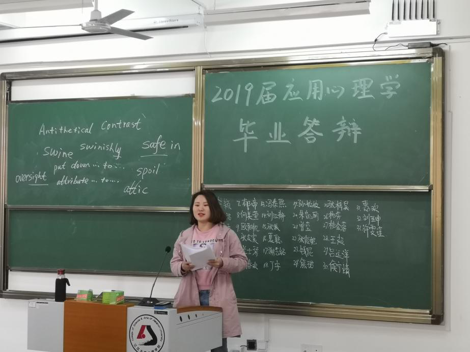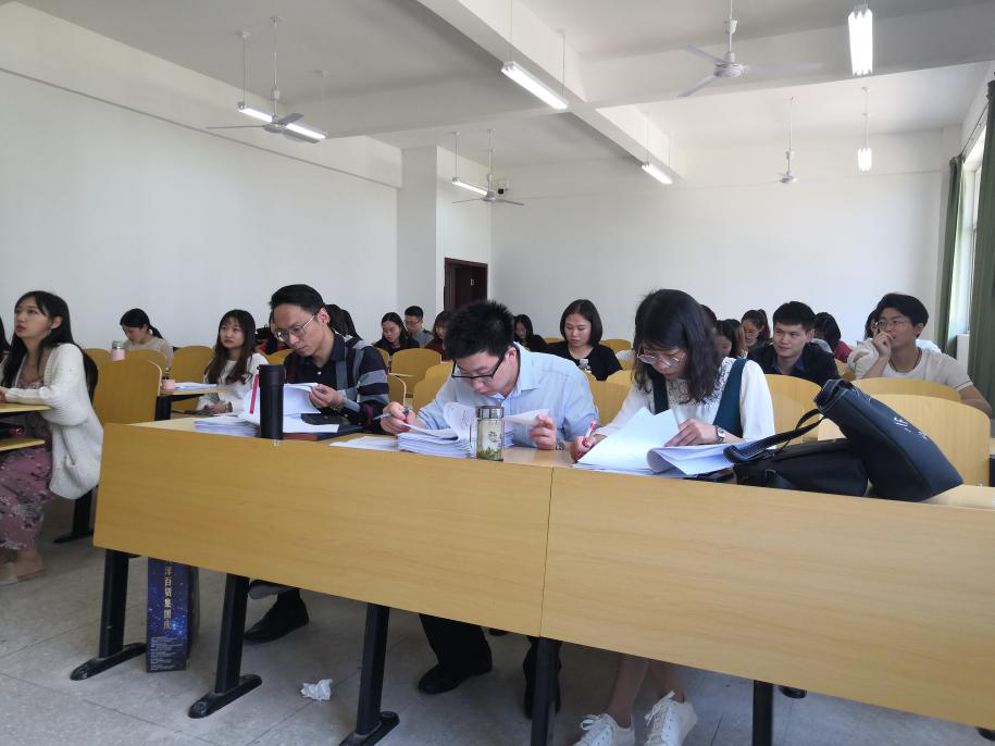 2019年5月8日下午1时,江汉大学文理公司太阳成集团tyc122ccvip在5号教学楼开展了2019届法学与应用心理学全体本科生毕业生论文答辩。本次答辩法学专业分为3个小组进行,第一组由李蔚、罗晓霞、党永鹏老师组成;第二组由陈海峰、罗平、王小娟老师组成;第三组由张卫容、吴蕾、田枭、赵雷组成。应用心理学专业也分为3个小组进行,分别是:第四组由薛洪涛、贺霞、孙志萍老师组成;第五组由张璇、戚文静、钟滢老师组成;第六组由郑小冬、高琴、王梦老师组成;分别在五号教学楼223、224、225、226、227与228教室同时进行。
