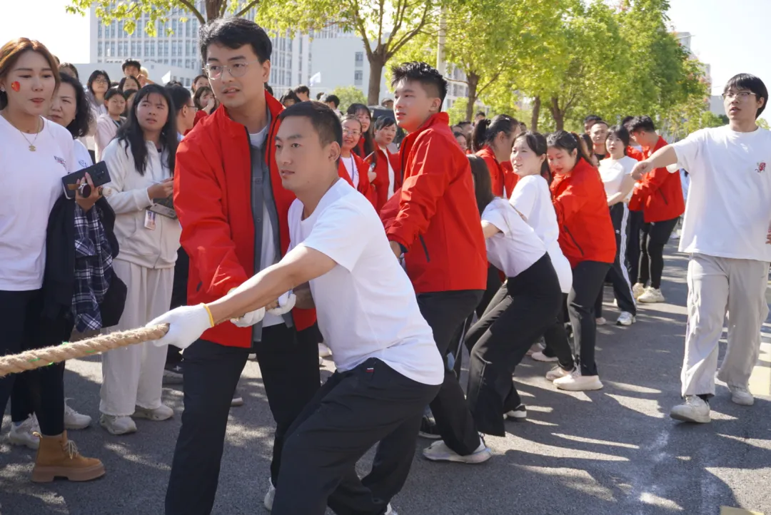紧接着,教职工们来到了拔河赛场,一根缰绳凝结着集体的荣耀,团队的力量随着一声声口号而壮大,向上的心因不断高攀的热情而高涨,一滴滴汗水,一次次发力,一阵阵鼓声将运动场上的热情推至顶点。