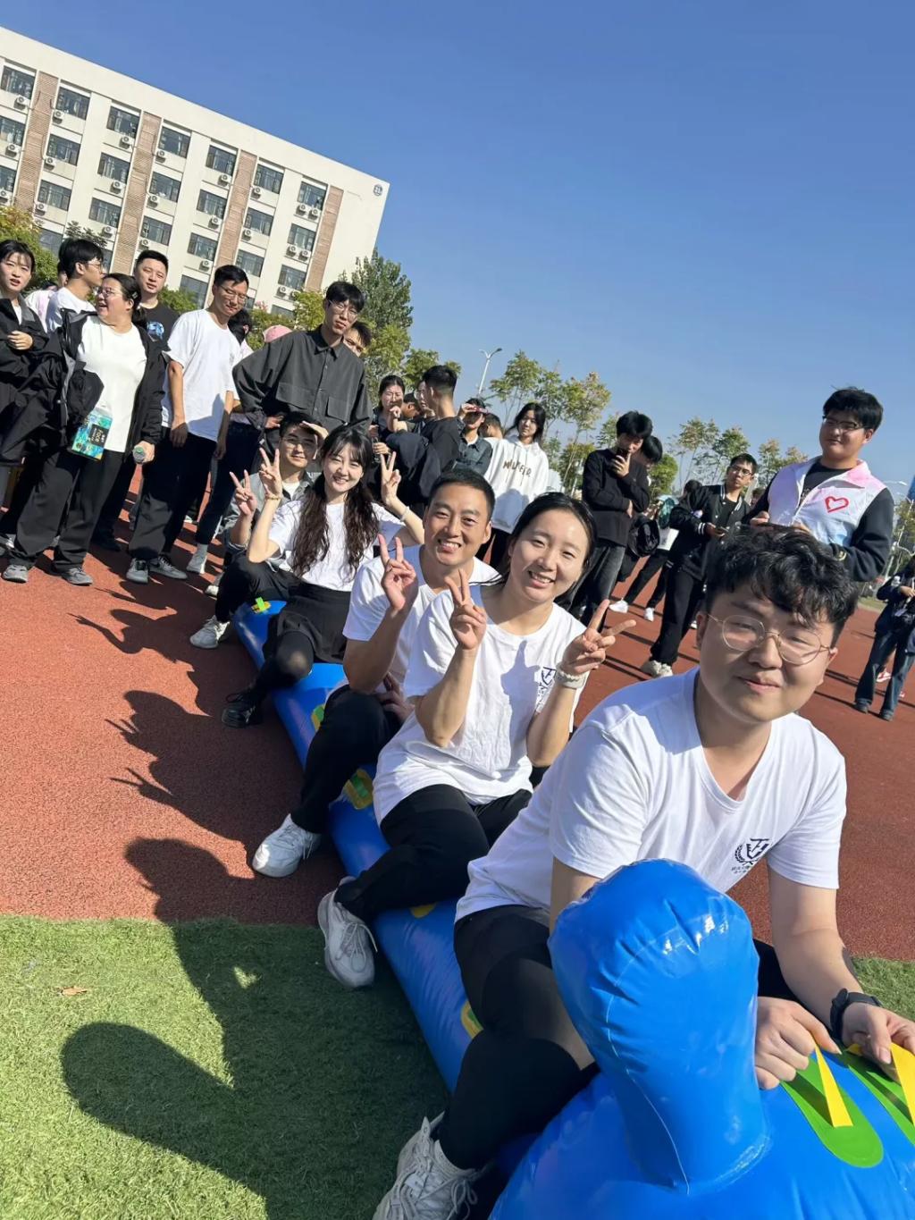接下来,是充满趣味的“欢乐毛毛虫”,教师们步伐一致,向着终点线奋勇前进,他们脸上洋溢着自信的笑容,完美诠释了“友谊第一,比赛第二”的竞赛原则;