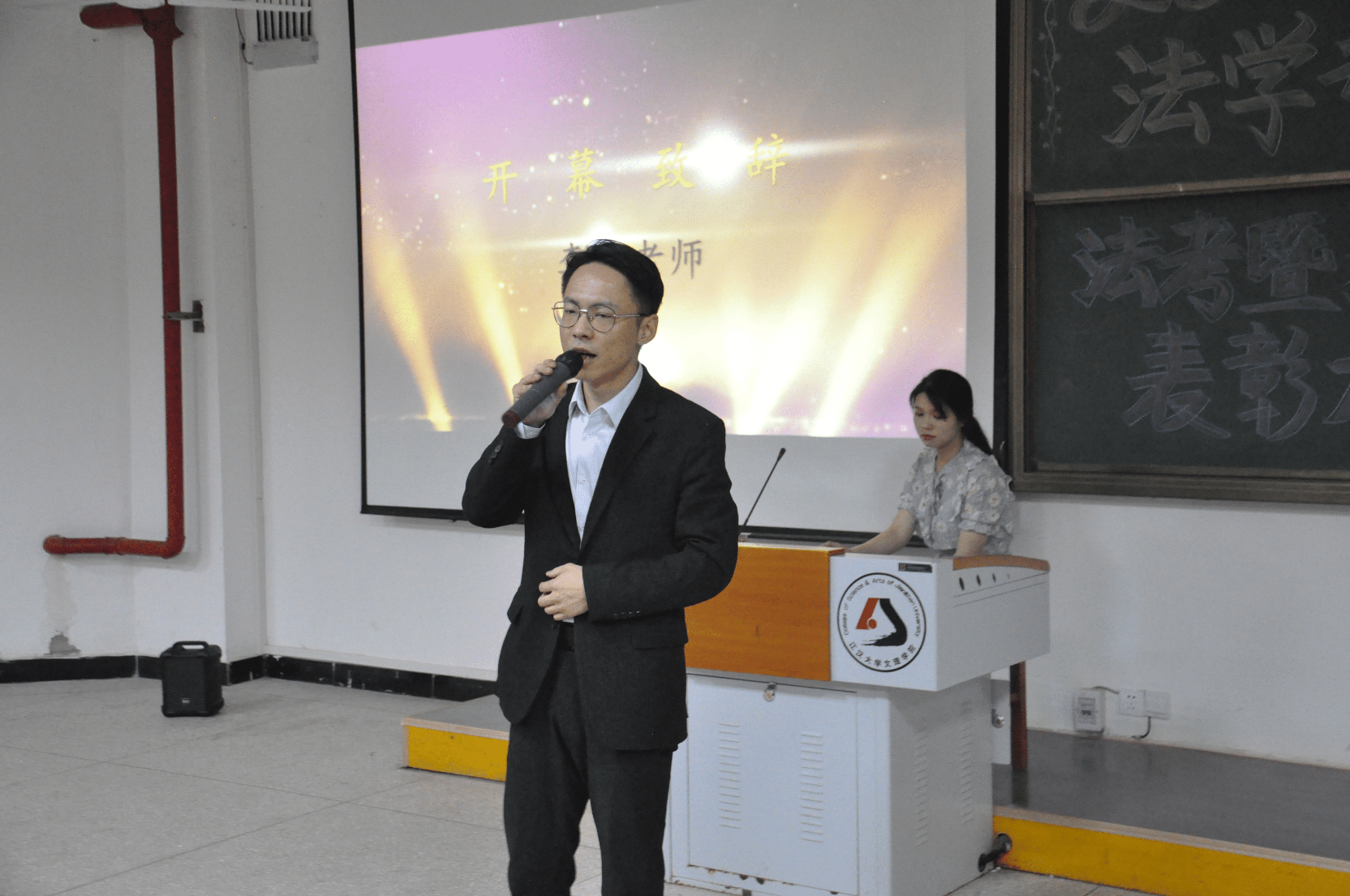 此次表彰大会由法律服务协会主办,江汉大学文理公司太阳成集团tyc122ccvip经理李蔚、副经理陈海峰、法学系主任张卫容、法学专业老师罗晓霞、吴蕾作为嘉宾到场。主持人王祺和崔玉洁宣布活动开始并一一介绍嘉宾。在一阵阵热烈的掌声过后,李蔚经理进行致辞,他首先对15级取得的成绩表示祝贺,他特别强调了15级的法考通过率为25%,远超过全国平均通过率的10%,顿时排山倒海般的掌声四起。他也提到,“学法者,治国安邦;学医者,悬壶济世”的确,学法者需要的是好学法!最后,经理对今年没有通过法考的同学给予鼓励和信心,对于通过法考的同学希望这是他们踏入社会的第一步,以后要做好一个法律工作者,要多为社会做贡献,要“不忘初心,坚持理想”。