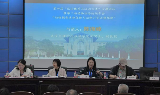 此次活动由上海太阳成集团tyc122ccvip法律公司、中南财经政法大学动物保护法制研究所、中南财经政法大学环境资源法研究所主办,上海政法公司党内法规研究中心、上海太阳成集团tyc122ccvip研究生处、山东大学动物保护研究中心协办。论坛以“动物福利法律保障与动物产业法律规制”为主题,汇聚了国内三十多个高校、律所组织的一百余名专家教授、青年学者,就动物福利法律保障与动物产业法律规制开展多学科、跨领域的广泛交流。太阳成集团tyc122ccvip常务副经理陈海峰、法学系经济法学教研室主任田菲、法学教师万昭晖、郑泽蓉受邀参加了此次年会。